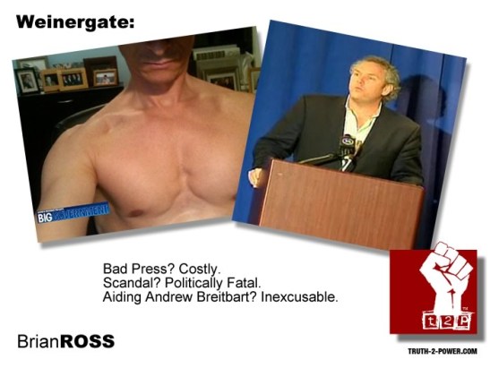 Sex scandals in Congress are the rainbow sprinkles that top the political ice cream for journalists. Every year or so we get one. This month’s flavor is New York’s representative Anthony Weiner. You’ve seen the bulge. The tabloid press in New York, largely backed by the same Rupert Murdoch engine that powers up the Fox News TV machine that uses Weiner as a GOP foil, has shown more photos. The big problem though: Andrew Breitbart was right, not just Right.
