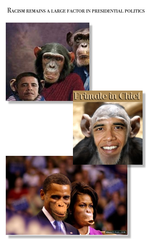 Then there are racist images, photos, etc. (see Right) The “monkey” photos and use of the “N” word to describe the President of the United States are all manifestations of that massive white fear.
