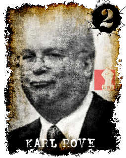 No. 2: Karl Rove – The man W. nicknamed “Turdblossom” lives up to that moniker as one of our top elephant droppings.  Rove is the defacto leader of the Neo Conservative wing of the Republican Party. Politicians come and go, but Rove is a principal architect and crypt keeper of more than a generation of linkage between the money and power of Wall Street, big oil, the military industrial complex,  big agribusiness, and the pharma industries to the NeoCon politicians, astroturf groups, and think tanks that hold a handful of the reins of power.