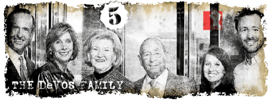 No. 5: The DeVOS Family – Not as well known as their pyramidic family business, Amway, the company’s co-founder Richard DeVOS Sr., his children and grandchildren are all big funders of the Far Right.