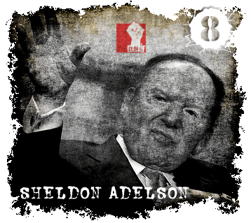 No. 8: Sheldon Adelson, one of the new Super PAC men, moves up into the A list of the Right Wing’s most wanted by being the primary money man behind the Newt Gingrich campaign, but as the sixth richest man in the world, his deep pockets afford the NeoCon wing of the Republican Party lots of ad buys, robo calling, and more.